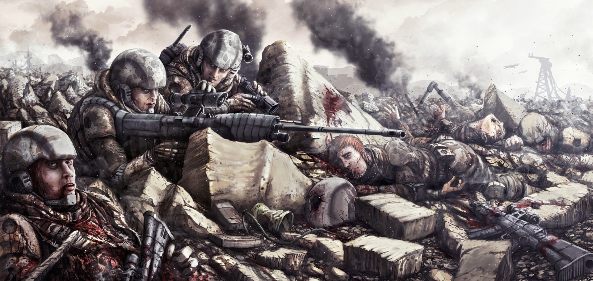 Mankind still recovering from WW3, goes to war against a hostile alien race. SC story.